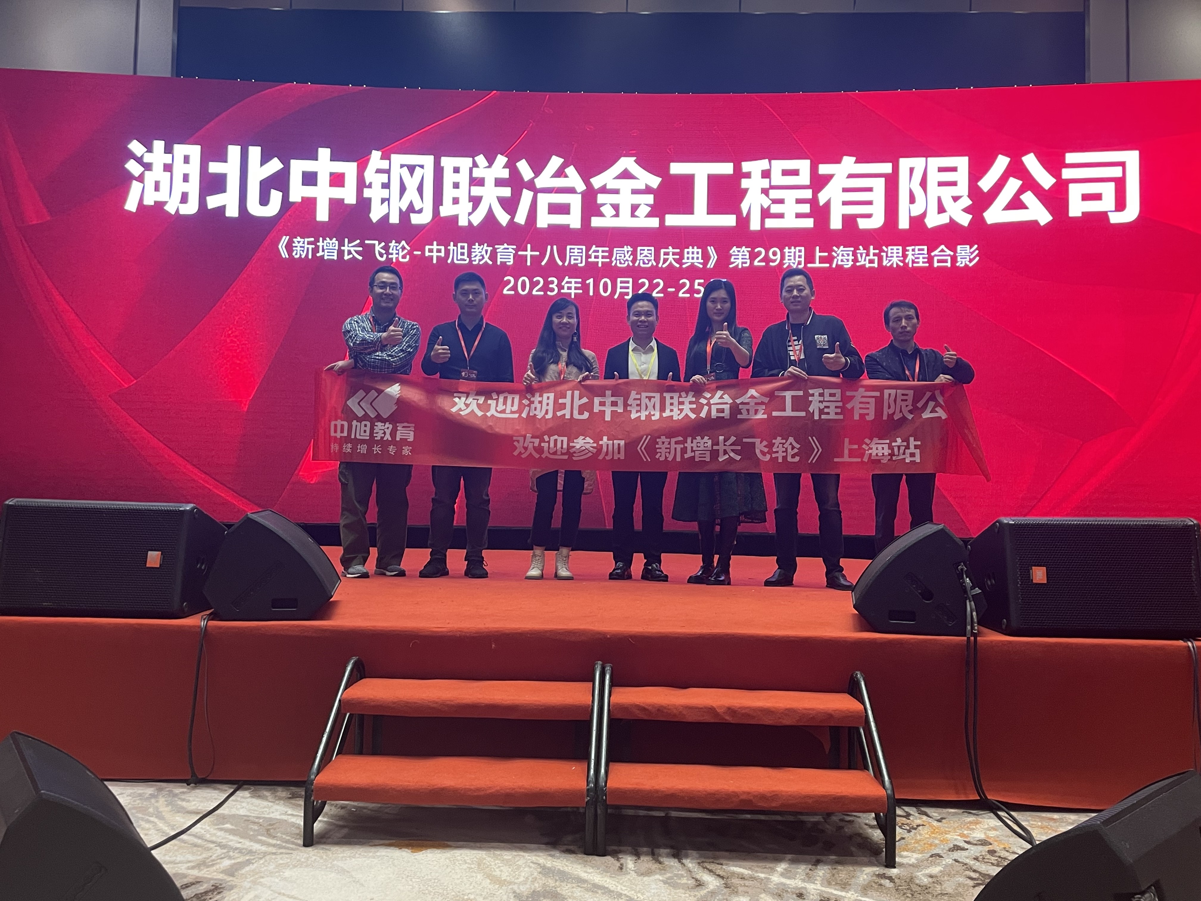 10 月 22-25 日金秋之際,中旭教育在上海舉行《新增長飛輪》課程,湖北中鋼聯(lián)冶金工程有限公司組織董事長符乃良、總經(jīng)理何雙林等 7 人管理團(tuán)隊(duì)參加了此次四天三晚的培訓(xùn),共同學(xué)習(xí)了新商業(yè)時(shí)代以價(jià)值驅(qū)動(dòng)企業(yè)持續(xù)增長的商業(yè)系統(tǒng),層層深入式的學(xué)習(xí)價(jià)值驅(qū)動(dòng)方法論,發(fā)掘企業(yè)未來 5-10 年的核心增長點(diǎn)。