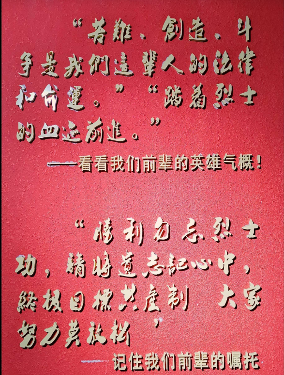 大家感到進(jìn)入陳列館就像進(jìn)入紅色基因的動感地帶,每一位烈士,每一滴血液,都輝映著先輩們高擎理想信念之火炬,用生命來擔(dān)當(dāng)使命的壯烈事跡。從士兵到將軍,他們不惜拋頭顱灑熱血為實(shí)現(xiàn)民族振興的夢想而不息奮斗。所有這些,無一不讓我們震撼,無一不讓我們激動。我們要像他們一樣,牢記初心,信念堅(jiān)定地?fù)?dān)起新時代的使命。
